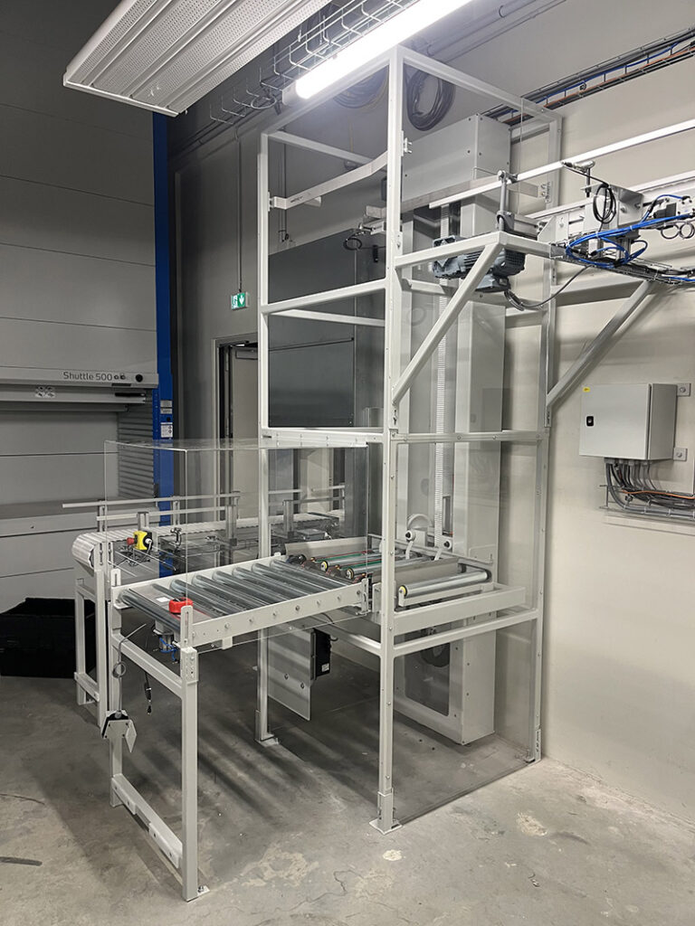 Chez THOMAS CONSTRUCTIONS MÉCANIQUES (TCM SAS), nous sommes fiers de présenter notre dernière innovation : une ligne de convoyage et d’aiguillage motorisée de caisses à couvercle solidaire spécialement conçue pour répondre aux besoins de la nouvelle plateforme logistique du CHU de Caen Normandie. Cette solution sur mesure, entièrement automatisée, révolutionne la gestion des flux dans un environnement pharmaceutique, éliminant la nécessité de manipuler manuellement les caisses et optimisant ainsi l’efficacité et le gain de temps.